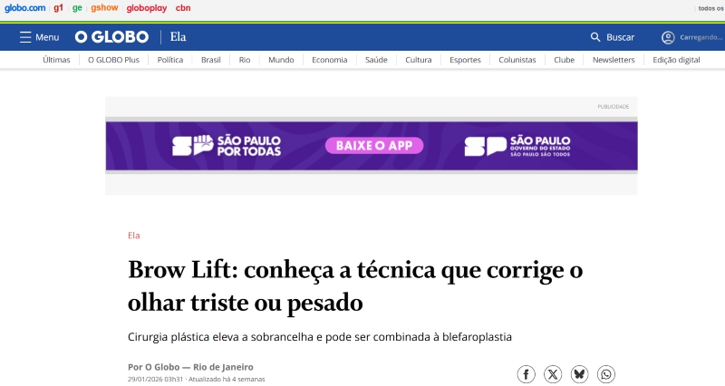 Início » Mídia » Brow Lift : conheça a técnica que corrige o olhar triste ou pesado.